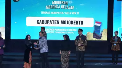 Pesatnya Transformasi Digital Bidang Pendidikan di Kabupaten Mojokerto mengantarkannya sebagai penerima Anugerah Merdeka Belajar 2023 dari Kemdikbud Ristek RI kategori Pemerintah Daerah Non 3T sub kategori transformasi digital.