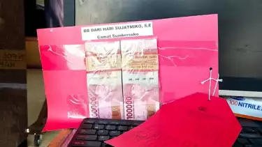 Lumajang, tvOnenews.com - Dugaan pungutan liar yang menjerat GZ, oknum Kepala Desa dan IF Kasi Pemerintahan Desa Mojosari, Kecamatan Sumbersuko, Lumajang, bakal menyeret nama baru. Pasalnya, dalam barang bukti yang digelar polisi di Mapolres Lumajang, Senin (29/5) terdapat dua gepok uang tunai pecahan 100 ribu senilai Rp20 juta, dengan keterangan BB dari Hari Sujatmiko, SE Camat Sumbersuko.