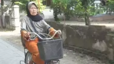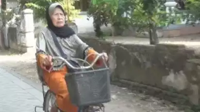 Tanpa rasa canggung, nenek yang biasa dipanggil mbah Gemi ini berolahraga sepeda keliling kampong, di tengah kesibukan pagi para tetangganya. Urat-urat tangan dan kakinya sangat tampak saat mengeluarkan tenaga mengayuh sepeda pada kulitnya yang keriput.
