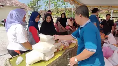 Bahkan warga yang mayoritas ibu rumah tangga ini rela datang sejak pagi ke lapangan desa setempat, hanya untuk mengantre mendapatkan paket sembako murah yang harganya selisih 3 hingga 4 ribu rupiah dari harga di pasaran.