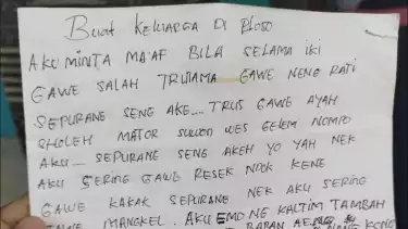 Tulis Surat Penyesalan dan Kata Maaf, Pemuda di Gresik Ditemukan Tewas Bunuh Diri