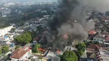 Malang, tvOnenews.com - Kebakaran hebat melanda rumah dan gudang penyimpanan kasur dan perabotan rumah tangga di Jalan Puncak Esberg, Kelurahan Karangbesuki, Kecamatan Sukun, Kota Malang.