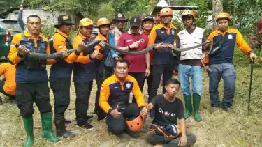 Madiun, tvOnenews.com - Puluhan tim relawan gabungan dan BPBD Kabupaten Madiun, akhirnya kembali diterjunkan ke hutan lereng Gunung Wilis, Minggu kemarin, untuk mencari ular jenis King Kobra yang telah dilepaskan relawan pada Kamis (1/6).