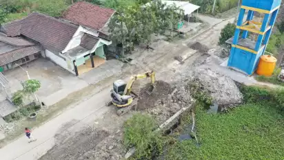 Rusak Parah Akibat Banjir Kali Lamong, Jalur Ekonomi Warga di Raya Banter- Kalipadang Gresik Mulai Diperbaiki