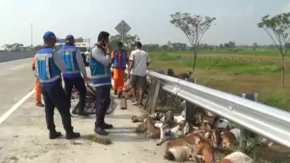 Beberapa ekor kambing mati karena terjepit, sedangkan beberapa diantaranya dalam kondisi lemas karena ada yang patah kaki dan terluka. Semuanya dipinggirkan untuk keamanan dan tidak berkeliaran di tengah jalan.