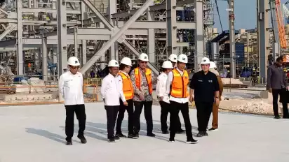 Gresik, tvOnenews.com - Progras proyek pembangunan Smelter PT Freeport Indonesia di Gresik mendapatkan apresiasi dari Presiden Joko Widodo (Jokowi) saat meninjau langsung lokasi proyek smelter milik PT Freeport di Java Integrated Industrial and Port Estate (JIIPE), Kawasan Ekonomi Khusus (KEK) Gresik, Selasa sore (20/6).