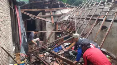 "Hari ini kami dibantu warga membersihkan material reruntuhan atap rumah. Seluruh atap rumah rusak parah," jelasnya.