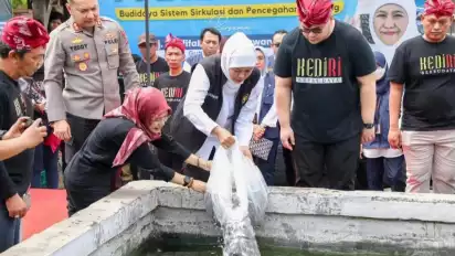 Tebar Benih dan Panen Ikan Lele di Kediri, Khofifah Berharap Dapat Tingkatkan Ekonomi Masyarakat