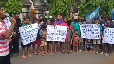 Kediri, tvOnenews.com - Puluhan warga yang tergabung dalam Sahabat Boro Jarakan (Seroja) kembali melakukan aksi unjuk rasa di Balai Kota Kediri dan di depan bangunan McDonald's Kota Kediri. Massa menuntut agar Kepala Disbudpar Kota Kediri untuk dicopot dari jabatannya.