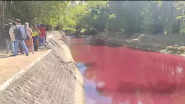 Pamekasan, tvOnenews.com - Warga Kabupaten Pamekasan, Madura, Senin (10/7), dihebohkan adanya fenomena penampakan air sungai yang berubah menjadi warna merah darah.