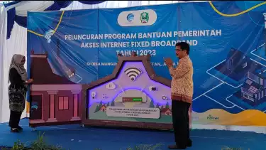 Ditjen PPI Kementrian Kominfo RI, Ir. Marvels Situmorang yang memimpin langsung launching Program Bantuan Pemerintah di Kantor Desa Mangunrejo, Kecamatan Kawedanan, Kabupaten Magetan, Selasa (11/7) mengatakan bantuan akses internet gratis ini adalah upaya yang dilakukan pemerintah sebagai stimulus untuk mewujudkan perluasan akses dan peningkatan penetrasi Fixed Broadband nasional.