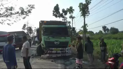 Sementara dari arah berlawanan melaju truk tronton bermuatan semen bernopol L 8544 UP yang dikemudikan Novianto Setiawan, dan di belakangnya ada truk tronton lain bernopol S 9843 UE yang dikendarai Sukardiono.