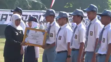 Surabaya, tvOnenews.com - Gubernur Jawa Timur, Khofifah Indar Parawansa memimpin hari pertama masa pengenalan lingkungan sekolah (MPLS) yang diikuti ribuan siswa SMA dan SMK sederajat, yang digelar di SMK Negeri 5 Surabaya. Dalam MPKS ini siswa berikrar anti kekerasan dan perundungan. MPLS kali ini juga berhasil memecahkan rekor MURI.