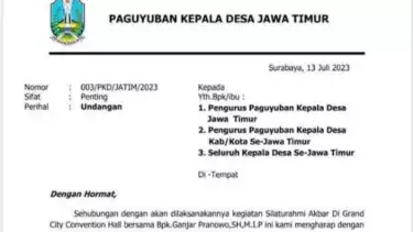 "Kami atas nama koordinator paguyuban perkumpulan Kepala Desa se-Jatim mohon maaf atas kekeliruan menggunakan logo Pemprov Jatim yang kami pasang dalam undangan tersebut," katanya.