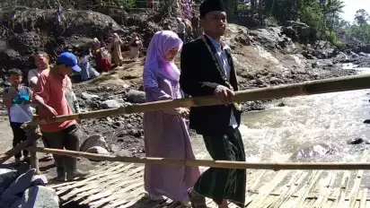 Pasangan Pengantin Baru Terpaksa Jalan Kaki Lewati Aliran Sungai, Pasca Jembatan Lumajang - Malang Putus