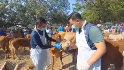 Sementara pemeriksaan hewan yang dilakukan petugas gabungan adalah dengan mengecek kondisi lubang alami pada sapi, kemudian suhu tubuh sapi, serta kondisi mulut. Bagi peternak yang sapinya memiliki ciri-ciri tersebut diatas maka dapat segera menghubungi petugas atau mantri hewan terdekat.