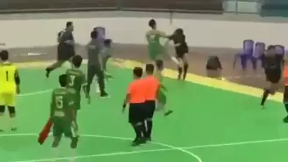 Saat itulah, tiba-tiba ada salah seorang pemain yang melakukan pemukulan ke pemain lawan. Aksi ini memicu pemain yang lain melakukan balasan.