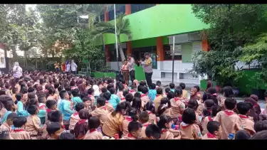 “Anak-anak usia SD tidak boleh naik sepeda motor ya, nanti pak polisi proses, yang mengambil bukan orang tua, tapi kepala sekolah. Anak-anak juga tidak boleh membully teman ya, tidak boleh merokok karena akan merusak kesehatan,” terang Iptu Wasis, yang disambut dengan keriuhan tepuk tangan oleh ratusan siswa.