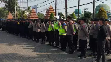 Surabaya, tvOnenews.com - Antisipasi mobilisasi konvoi massa di jalanan dalam pengesehan PSHT di Surabaya, Kepolisian Resort Kota Besar Surabaya mengerahkan 1.738 personel untuk pengamanan acara pengesahan perguruan silat PSHT yang dilaksanakan di Kadiklatal, Krembangan, Perak, Surabaya, Jumat (28/7).