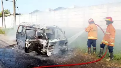 Dipicu Korsleting, Sebuah Minibus di Gresik Hangus Terbakar, Pengemudi Berhasil Selamatkan Diri