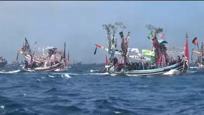 Banyuwangi, tvOnenews.com – Memasuki pertengahan bulan Suro dalam kalender Jawa, nelayan di Muncar, Banyuwangi menggelar ritual Petik Laut, Rabu (2/8) pagi. Ritual ditandai dengan melarung sesaji di perairan Selat Bali. Tradisi turun temurun ini sebagai ungkapan syukur kepada sang pencipta, sekaligus memohon berkah keselamatan.