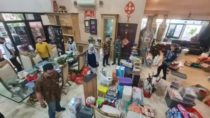 Surabaya, tvOnenews.com - Petugas Pengadilan Negeri (PN) Surabaya melakukan eksekusi rumah mewah yang berlokasi di Jalan Kertajaya Indah no 28, Surabaya. Rumah mewah senilai Rp 24 miliar dengan sebidang tanah luas keseluruhan 1050 meter persegi ini milik Soesanto Hadiprajitno. Rumah mewah ini dipenuhi dengan koleksi guci mulai dari ukuran terkecil hingga besar.