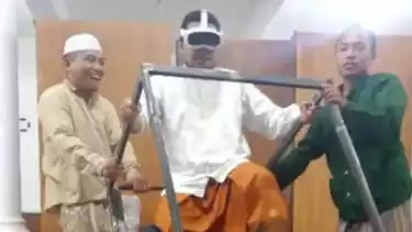 "Satu persatu para ustad mencoba bermain Game VR, di hadapan semua ustad yang ada," terangnya.