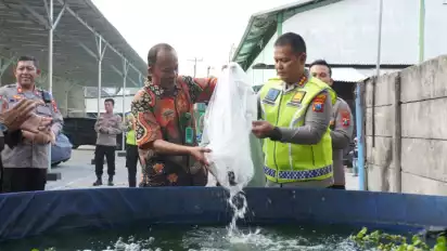Dukung Ketahanan Pangan, Polresta Sidoarjo Tebar 5.000 Benih Ikan Lele