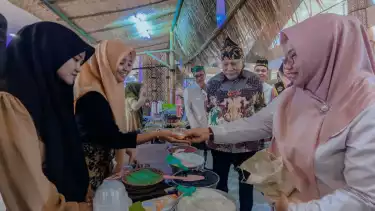 Usai mencicipi aneka jajanan jadul yang semasa kecilnya ada di lingkungannya, Wakil Bupati Aminatun Habibah, lantas memberikan apresiasi terhadap berlangsungnya pasar Djadoel Grisse.