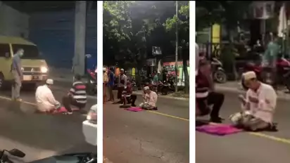 Dalam rekaman video berdurasi 25 detik yang viral itu, awalnya warga mengira ada kecelakaan karena ada ramai-ramai warga ke tengah jalan. Setelah didekati ternyata warga sedang menjaga pria yang salat di tengah jalan raya agar tidak terjadi hal yang tidak diinginkan. (mhb/far)