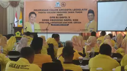 Hal itu disampaikan Sarmuji dalam kegiatan Konsolidasi dan Pelepasan Calon Anggota Legislatif Partai Golkar Provinsi Jawa Timur dari DPR RI Dapil X, DPRD Provinsi Dapil XIII dan DPRD Kabupaten Lamongan dan Gresik, di Hall Hotel Grand Mahkota Lamongan, Sabtu (12/8).