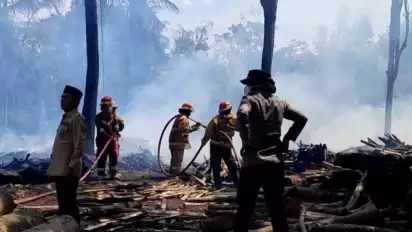 Probolinggo, tvOnenews.com - Sebuah gudang pemotongan kayu di Jalan Raya Lumajang, Desa Malasan, Kecamatan Leces, Kabupaten Probolinggo, ludes terbakar, pada Senin (14/8).