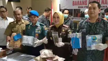 Surabaya, tvOnenews.com - BNNP Jatim memusnahkan sabu seberat 908, 1 gram dan ganja 5,29 kilogram. Barang bukti tersebut hasil ungkap dari dua kasus dan penyerahan barang bukti dari 4 saksi, terdiri dari Denpomal Lanudal Juanda, penyerahan pihak jasa ekspedisi kantor Surabaya, Kabupaten Malang dan Nganjuk.