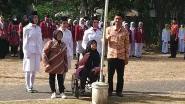 Pada upacara pengibaran bendera yang dilaksanakan di Lapangan Tunggulwulung, Jalan Arumba, Kota Malang ini, para penyandang disabilitas berperan aktif sebagai petugas pelaksana upacara.