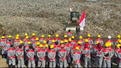 Sidoarjo, tvOnenews.com - Puluhan pekerja pemilah sampah di Sidoarjo, melakukan upacara bendera peringatan detik-detik proklamasi kemerdekaan ke-78 RI. Upacara ini digelar di tempat pembuangan akhir (TPA) sampah di Jabon, Sidoarjo.