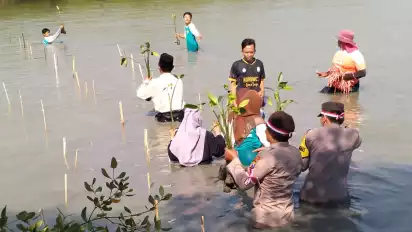Selamatkan Bumi dari Pemanasan Global, Polisi di Gresik Aksi Serentak Tanam Pohon Mangga hingga Mangrove