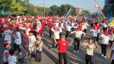 Semarak Peringati HUT RI ke 78, Warga di Sidoarjo Gelar Senam dan Jalan Sehat Merah Putih