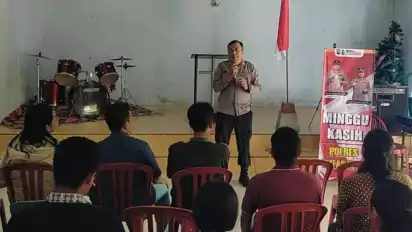 "Giat Minggu Kasih di gereja menyampaikan program Polri dan mendengarkan keluhan jemaah gereja," kata AKP Budi Agus.