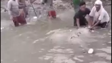 Sidoarjo, tvOnenews.com - Warga nelayan Desa Banjarkemuning, Sedati, Sidoarjo dihebohkan dengan seekor buaya muara berukuran besar yang berkeliaran. Buaya itu sempat keluar dan sempat terjaring milik nelayan.