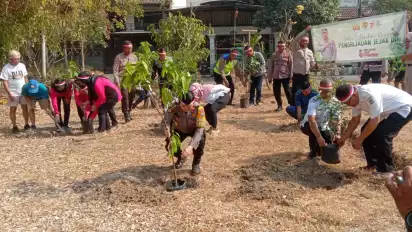 Aparat kepolisian, TNI dan petugas kecamatan, serta warga di kawasan Kutisari, Surabaya menanam pohon bersama