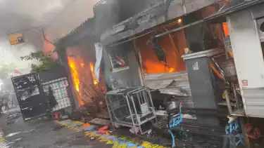 Surabaya, tvOnennews.com - Diduga akibat korsleting listrik, dua rumah di Jalan Margorukun III Nomor 4, Kelurahan Gundih, Kecamatan Bubutan, Surabaya musnah dilalap si jago merah. Api yang cepat membesar melalap dua rumah di kawasan padat penduduk tersebut pada Kamis (24/8).