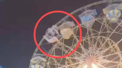 Dalam rekaman video amatir warga yang berdurasi 29 detik itu memperlihatkan detik-detik tempat duduk wahana permainan bianglala berisi pengunjung nyaris terjatuh, lantaran rantai pengikat keranjang tersebut putus hingga berayunan.