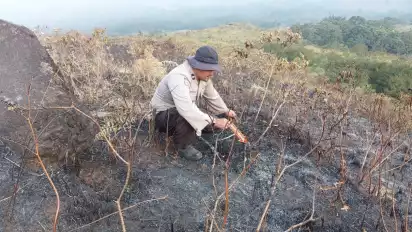 Polisi Lakukan Olah TKP Bekas Titik Api Gunung Arjuno
