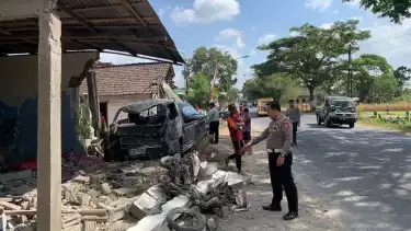 Blitar, tvOnenews.com - Pengendara sepeda motor atas nama Kadir (77) dan Winarsih (39) warga Desa Karanggondang, Kecamatan Udanawu, Kabupaten Blitar, meninggal dunia karena ditabrak mobil pikap saat akan menyeberang di Jalan Raya Karanggondang, Kecamatan Udanawu, Blitar. Kedua kendaraan yang terlibat kecelakaan sempat terpental hingga menabrak tembok warung milik warga hingga ambrol.
