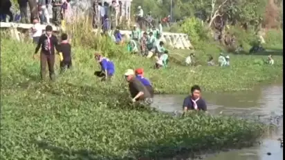 Bangkalan, tvOnenews.com - Kali Jelita di Bangkalan, Madura dipenuhi oleh tumpukan sampah dan rumput liar. Sampah liar yang menumpuk di tengah kali tersebut, membuat arus air tertutup. Guna air kali berjalan dengan normal, sejumlah Tentara Nasional Indonesia (TNI)  Angkatan Laut bersama Polri dan pelajar bergerak dengan melakukan pembersihan terhadap tumpukan sampah liar, di sepanjang Kali Jelita, Desa Bilahporah, Kecamatan Socah, Kabupaten Bangkalan.