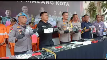 Malang, tvOnenews.com - Tim Satreskrim Poksekta Lowokwaru berhasil mengungkap dan menangkap sindikat pencurian sepeda motor (curanmor) dan penjualan motor hasil curian dengan modus mengubah nomor rangka dan mesin. Petugas berhasil meringkus lima orang tersangka.