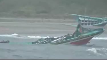 Banyuwangi, tvOnenews.com – Kapal ikan yang karam di perairan Grajagan, Banyuwangi dan menewaskan 4 orang, kondisinya mengenaskan. Kapal berbahan kayu itu patah total, rusak parah. Bahkan, bagian anjungan habis disapu ombak. Bangkai kapal masih dibiarkan karam di lokasi, Kamis (7/9).