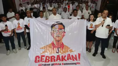 Surabaya, tvOnenews.com - Sejak dideklarasikan Agustus lalu di Surabaya, relawan Gebrakan (Gerakan Gibran Kemenangan) mengapresiasi statement Ketua Mahkamah Konstitusi (MK), Prof. Dr. Anwar Usman yang menyatakan soal batas usia Capres dan Cawapres.