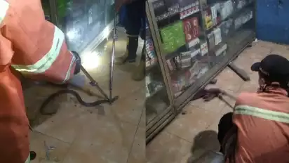 "Saat dicari sumber suara dan ditemukan ternyata ular kobra yang bersembunyi di bawah etalase barang dagangan. Tanpa berpikir panjang pemilik rumah melaporkan kejadian ini dengan menghubungi call center damkar dan penyelamatan gresik," jelas Sinaga.