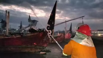 Banyuwangi, tvOnenews.com - Warga di pesisir Muncar, Banyuwangi dibuat geger, Senin (11/9) malam. Tiga perahu nelayan yang parkir di lokasi mendadak terbakar. Penyebab kebakaran masih misterius. Dugaannya, api dipicu puntung rokok.